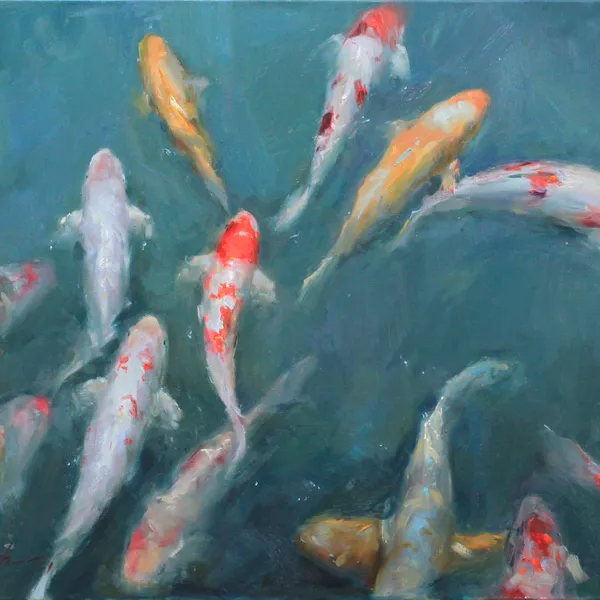 The focus is not the moment of motion but the persistence of it. Fish circling, turning, and drifting create a calming visual pattern. Attention shifts to flow, direction, and balance within the composition.Water softens edges and slows perception. The scene feels meditative, encouraging observation without urgency. Rather than telling a story, the image becomes an experience of patience and quiet awareness.