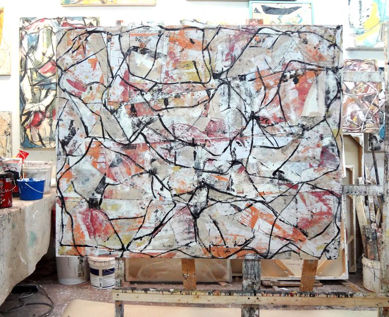 My paintings do have a story to tell although it does not lie in each piece but in the process of abstract expressionism. As an artist I think about scale, unity and color. I’m not trying to make paintings that go in museums but artwork that would add drama and beauty to a modern living space. I build my own canvases and experiment with sizes all the time. A perfect size would be large enough to enhance the space but not too big to dominate the wall. Color is very subjective; I try not to be harsh but refined in my color choices. With scale, unity and color working together a painting can add a considerable amount of elegance to residential and commercial settings.
