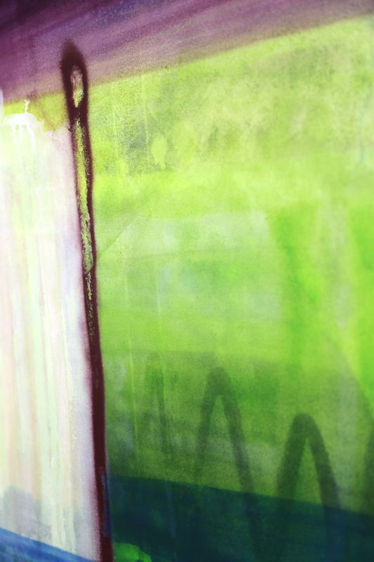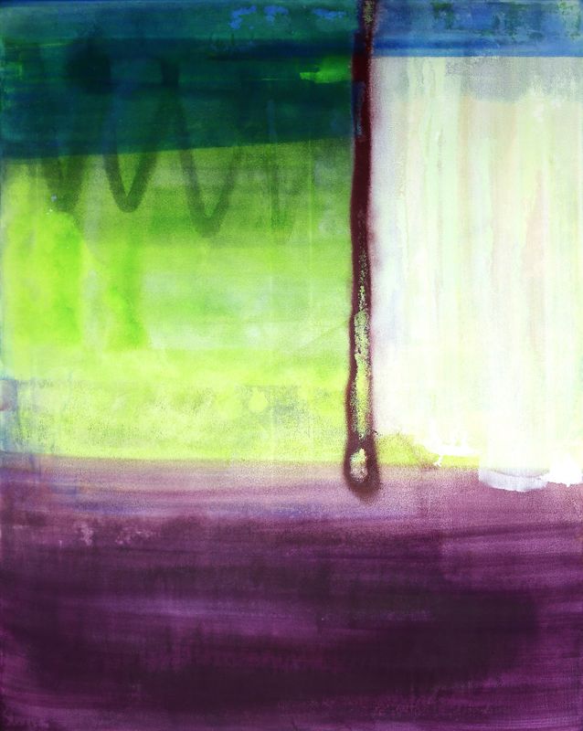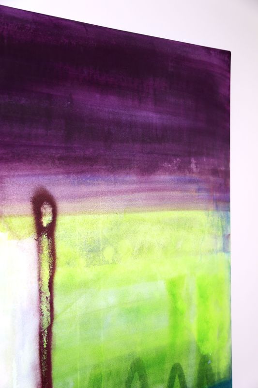 Original minimalistic abstract painting. Rich bright and vibrant colors. Minimalistic and expressive. Violet and light green color.