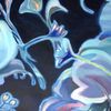 Acrylic painting on an unmounted 120 X 160 cm canvas.The painting would be varnished before being sent rolled up in a tube.Represents flowers floating in the air .