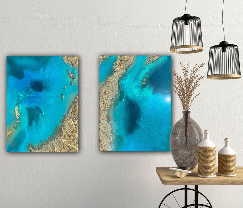 Miniature round ocean painting Inspired by The Turks And Caicos ocean colors Different shades of blue tones, turquoise, teal, aqua, gold and white This painting does not need to be framed, the painted image extends over the sides, it is wired, signed, ready to hang and comes with Certificate of Authenticity. Due to the techniques used, this painting cannot be reproduced, repeated, recreated. Every painting obtained through these fluid painting techniques happens only once in an infinity of attempts. All pieces are painted in layers and that gives them a tridimensional aspect with intricate details that add richness and depth to the final image. These painting techniques make the paintings unique and impossible to recreate, reproduced, recreated thus ever more so special. Every painting obtained through these fluid painting techniques happens only once in an infinity of attempts. Due to the high gloss finish it is impossible to take perfect photos of the paintings and to be able to capture all the details emerged between layers in one same photo or to photograph them without having objects reflecting onto their glossy surfaces. Different types of light and angles make looking at my pieces a continuous process of discovering various shades of colors and multiple details, and that makes these paintings always looking slightly different and never boringly predictable to look at. ------------------------------------- PLEASE NOTE: • International deliveries may be subject to local customs duties, these vary from country to country and are payable by the customer. • I use all professional packing materials to make sure your artwork gets to you safely wherever in the world you may live. • Please understand while I make every effort to ensure that the pictures show as close as the actual piece, some colors may appear slightly different in person due to lighting and screen settings variation. • I use a high quality resin that will not yellow, crack, or cloud over time. • I cannot always guarantee a 'flawless finish' but always aim for perfection and try my best to reduce the amount of interference from environmental elements. ------------------------------------- Care instructions: - To clean this piece of art and keep that glossy shine use a gentle glass cleaner, spray it on and wipe and buff with a soft cloth that is gentle to the surface. The resin will not crack, but it can scratch, so please handle with care. - Direct sunlight exposure can damage and may fade artwork. - Do not place close to heating systems. - Avoid touching the surface.
