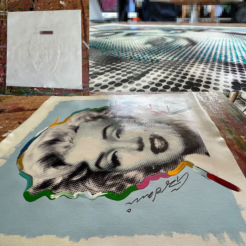 One-of-a-kind Pop Art Original Painting on Canvas by Gardani available for you. Hand signed by the Artist front and back, comes with official Gardani Certificate of Authenticity with a unique dollar bill sequence as a registration matching number of that Artwork/sale. Details Medium: Mix media, silk screening, hand finished with Oil, Acrylic, on canvas. Size: 18 x 18 in. Artwork: Stretched ready to hang, not framed. Stretched: Wrapped around Wood Bars 1. in. depth. Movement & Style: Pop Art, Contemporary Art Condition: Excellent. Made in USA.