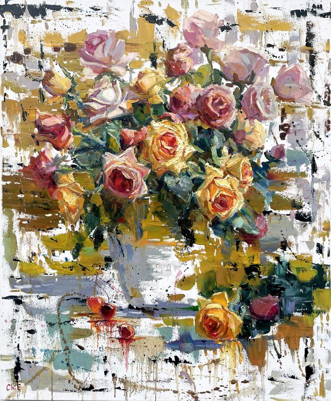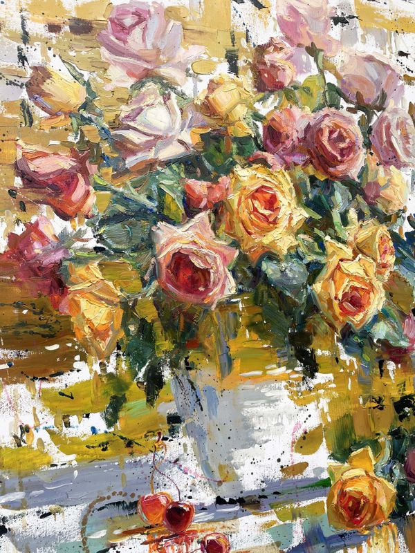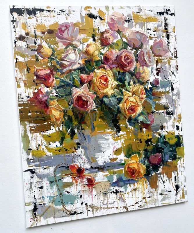 Original Oil painting by Ukrainian artist Evgeny Chernyakovsky "Bouquet with roses" 70.0 X 85.0 CM / 27.5 X 33.4 IN HIGH QUALITY oil on canvas Signed on the front and back Dated 2024 Good condition GUARANTEE OF AUTHENTICITY