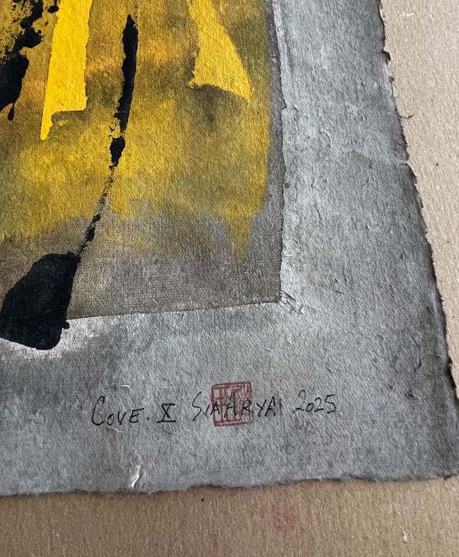 COVE.X White framed surreall yellow painting by Sia Aryai