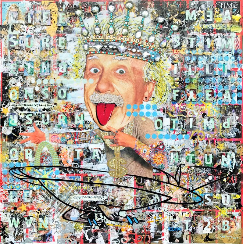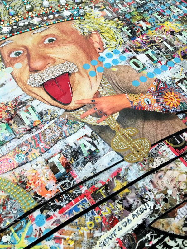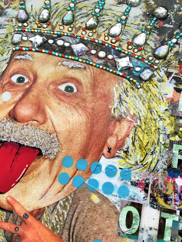 Using an iconic image of Albert Einstein, Time magazine background and numerous mathematical equations this piece is meant to inspire the viewer through use of intense color and direct message, specifically; "Life is measured in billions of years, you're not important, unless you want to be."