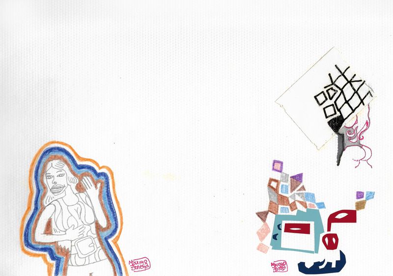 This drawing was done with watercolour pencil, pencil and vinyl collage on A4 textured paper, done around 2007/2008, when I was living in Devonport, Auk. After all this years, kept in storage now is available for you. This artwork is not framed.